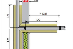 Die Mindestabschottungsdicke der Schachtwand (W) ist dabei abhängig von der erforderlichen Feuerwiderstandsfähigkeit nach Abs. 4.3 MLAR: