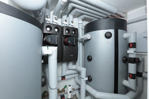 Unterstützt wird das System durch einen 800-Liter-Schichtenpufferspeicher im Technikraum, der Energie zur Verfügung stellt, wenn sie gebraucht wird. Auch für die Abtauung der Außengeräte im Winter ist somit gesorgt.