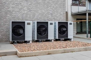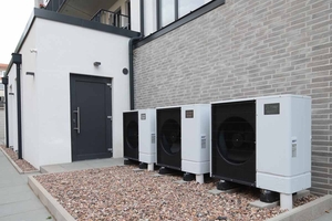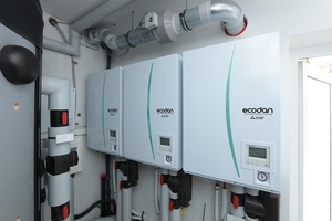 Die drei Ecodan Luft/Wasser-Wärmepumpen mit je 11,2 kW wurden im Außenbereich aufgestellt und über vorkonfektionierte Hydromodule im Technikraum angeschlossen. Jede Außeneinheit hat ihr eigenes Modul, das Wärmepumpe und Heizkreislauf hydraulisch entkoppelt. Das erleichtert den Abgleich im Betrieb und macht die Montage deutlich einfacher.