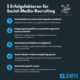 Ausführliche Tipps und Fallstricke sind unter jenpix.de/social-media-marketing/praxistipps-social-media-recruiting einsehbar. Die Online-Marketing-Agentur bietet zudem eine kostenfreie Erstberatung an.