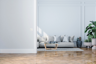 Modernes Heizen: Behaglichkeit kombiniert mit uneingeschränkter Gestaltungsfreiheit, lediglich ein unauffälliger Regler ist im Raum sichtbar.
