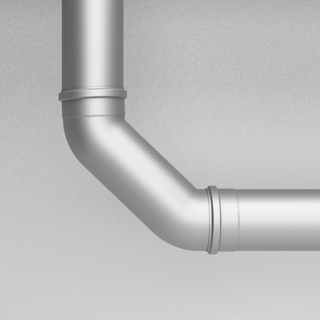 Die „Aco Pipe“-Edelstahl-Rohrleitung: Gestaltung des Übergangs für die Beruhigungsstrecke: 2 Bögen je 45°, Länge mind. 250 mm.
