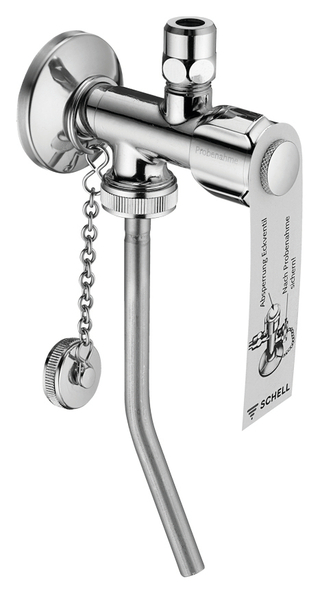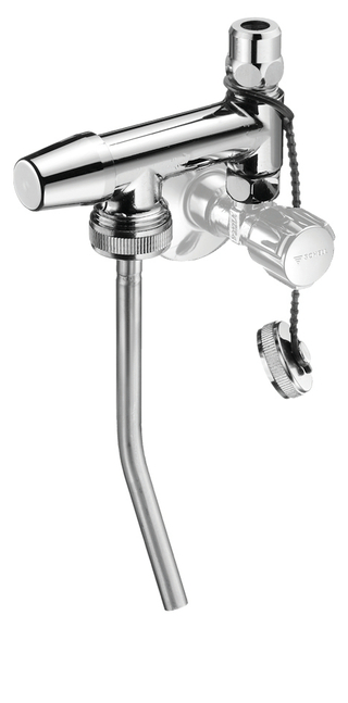 Ausschließlich bei der systemischen Untersuchung auf Legionellen muss der erste Liter des Trinkwassers verworfen werden, bevor ein Volumen von ca. 150 bis 250 ml für die Laboruntersuchungen entnommen wird. So soll der Einfluss der Armatur auf das Untersuchungsergebnis minimiert werden. Dies ist neben der zwingend notwendigen Entfernung von Strahlreglern, Duschschläuchen etc. (DIN EN ISO 19458 Zweck b) der Grund, warum nur bei der Untersuchung auf Legionellen das Wasser auch über Probennahmeventile entnommen werden darf (Abb. 2). Dies ist sogar empfehlenswert: Nur so wird der Einfluss der Armatur auf das Untersuchungsergebnis sicher ausgeschlossen. Bei manchen Armaturen (vgl. Text weiter oben) ist die Wasserentnahme über Probennahmeventile sogar zwingend notwendig, um die Untersuchung von Mischwasser zu vermeiden.