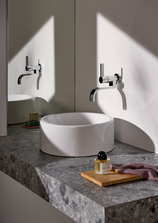 In den Bädern kommt dabei den Armaturen eine zentrale gestalterische wie auch funktionale Rolle zu. Sie entwickeln sich zur Schlüsselkomponente urbaner Badarchitektur: Kombiniert mit edlen Materialien und sorgfältig abgestimmten Farben avancieren sie schnell zum Mittelpunkt des Raums. Dornbracht bietet eine Reihe unterschiedlicher Armaturendesigns sowie verschiedene Lösungen für begrenzte Platzverhältnisse. Dazu zählen unter anderem Modelle mit kleiner Ausladung für kompakte Waschtische sowie wandmontierte Varianten, die zusätzliche Bewegungsfreiheit ermöglichen.