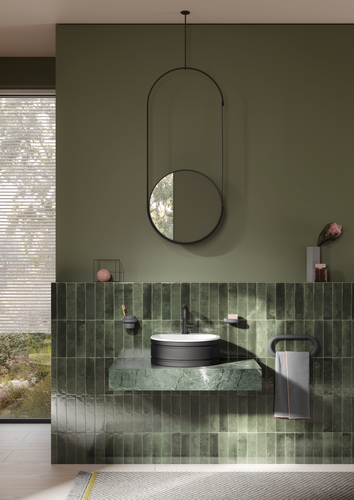 HEWI präsentiert „DUO“ – den runden Aufsatzwaschtisch, der mit kontrastreicher Zweifarbigkeit, hochwertiger Keramik und klarer Formensprache neue Akzente im Bad setzt. „DUO“ verbindet traditionelles Material mit modernem Design und überzeugt durch eine weiße, glänzende Innenfläche sowie wählbare Außenseiten in Weiß glänzend, Grau glänzend oder Schwarz matt. Die kompakte Form mit 42,6 cm Durchmesser und 15 cm Höhe bietet hohen Waschkomfort und lässt sich vielseitig in unterschiedliche Badkonzepte integrieren. Zur Auswahl stehen zwei Modellvarianten – mit oder ohne Hahnloch.