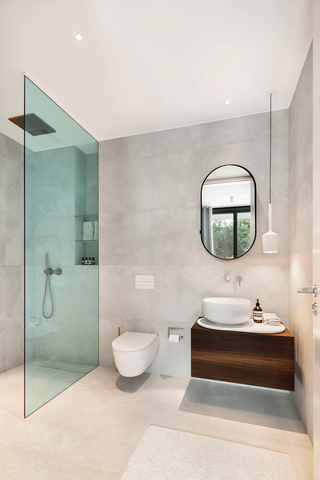 Zeitgemäße Badkonzepte verstehen Entwässerung nicht mehr als rein technisches Bauteil, sondern als integralen Bestandteil der Architektur. Ob wandnah, wandbündig, frei positioniert oder bündig in Nischen integriert – die Entwässerung folgt dem architektonischen Konzept, nicht umgekehrt. Die klassische „TECEdrainline“-Duschrinne beispielsweise schafft einen bodenebenen Raum und erfüllt individuelle Designwünsche. Mit Abdeckungen aus Edelstahl oder Glas setzt sie dabei elegante Akzente. Als Träger für Naturstein integriert sie sich fast unsichtbar in den Duschplatz, sodass nur ein schlichter Spalt im Fußboden sichtbar bleibt. Bei einer verfliesbaren Mulde bleibt in der Regel ein sichtbarer Edelstahlrahmen, der den Bereich markiert, in dem das Wasser abläuft. Das Ergebnis ist maximale gestalterische Freiheit, verbunden mit zuverlässiger Funktionalität und hoher Planungssicherheit.