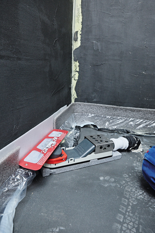 Geschickt und gut durchdacht: Hier wird eine „TECEdrainway“-Duschrinne im Übergang zwischen Wand- und Bodenfliesen installiert.