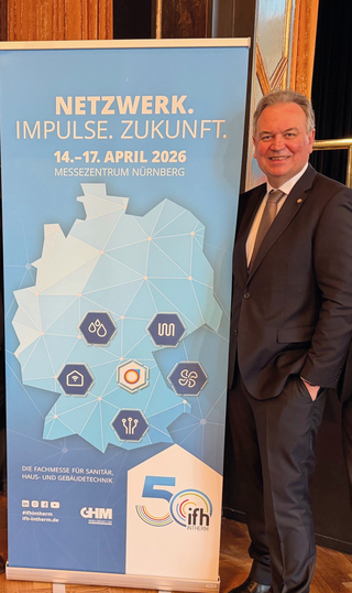 Große Bühne: Die Messe IFH/Intherm begeht 2026 ihren 50. Jahrestag und wird von Ausstellern und Besuchern gleichermaßen gefeiert. Denn mit ihrem hohen Buchungsstand für die Messezeit vom 14. bis 17. April und zahlreichen Highlights ist und bleibt sie ein attraktives Ziel für die Mitglieder der SHK-Familie. Die SHK Profi-Redaktion sprach darüber mit Dr. Wolfgang Schwarz, Hauptgeschäftsführer des Fachverbandes SHK Bayern.