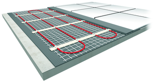 Heizmatte, verlegt als Dünnbett-Heizung.