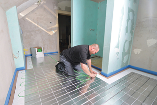 Die Heizleiter können frei verlegt, als Heizmatte auf dem Estrich ausgelegt oder, wie hier zu sehen, auch in Kombination mit vorgefertigten Systemelementen installiert werden.