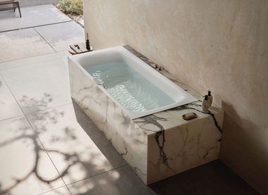 Die neue „BetteSelect Duo“ ist die Schwester der etablierten „BetteSelect“. Sie ist jedoch als Einzelwanne konzipiert, die Duo-Variante hingegen ist die perfekte Wanne für Zwei. Dazu wurde ihre Innenform trapezförmig gestaltet, sodass sich auf beiden Seiten ergonomische Rückenschrägen befinden, die sehr bequemes Sitzen erlauben. Weich gerundete Nackenprofile, die sanft in einen breiten Rand übergehen, erhöhen den Liegekomfort zusätzlich. Komfortabel für das Wannenbad zu zweit ist auch die mittige Position des Ablaufs, denn so fühlt sich niemand durch den Ablaufdeckel gestört. Da die „BetteSelect Duo“, wie jede Badewanne von Bette, aus glasiertem Titan-Stahl gefertigt wird, ist sie in allen Badszenarien erste Wahl, die auf eine lange Lebensdauer bei gutem Preis-Leistungsverhältnis ausgelegt sind.