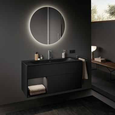 Die Relingsystem-Serie „Aura“ von emco für Waschtisch, Dusche und Wanne sowie den WC-Bereich verleiht dem Bad eine puristische und zugleich besondere Ausstrahlung. Mattschwarze Oberflächen treffen auf hochwertiges klares und satiniertes Kristallglas. Das Produktportfolio umfasst Handtuch- und Badetuchhalter in den Breiten 600, 800 und 1.200 mm sowie ein Duschrelingsystem in den Maßen 300, 400, 600, 800, 1.000 und 1.200 mm mit praktischen, dezent integrierten Ablaufrinnen. Für den Waschtisch gibt es wahlweise eine Reling mit Doppelglashalter mit oder ohne Flüssigseifenspender sowie eine Kombination aus einem Mundspülglas und Flüssigseifenspender. Am WC kommen die links- oder rechtsseitig montierbaren Papierhalter zum Einsatz – ergänzt um eine passende WC-Bürstengarnitur. Die „Aura“-Accessoires werden klassisch geschraubt oder einfach geklebt. Die sichere Klebemontage lässt sich jederzeit ohne Rückstände entfernen.