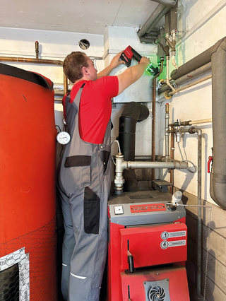 SHK-Unternehmer Nils Baumgart beim Test der „ROMAX NANO“.