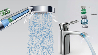 (1) Im Vergleich zu konventionellen Hansgrohe-Produkten. Bei „EcoSmart“ reduzieren flexible Durchflussbegrenzer den Wasserverbrauch auf maximal 8 l/min (bei 3 bar).