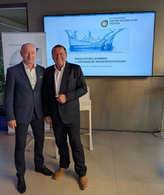 Sven Fischer und Holger Mittlmeyer vom FV SHK Sachsen eröffneten die Wasserfachtagung und moderierten die Veranstaltung.