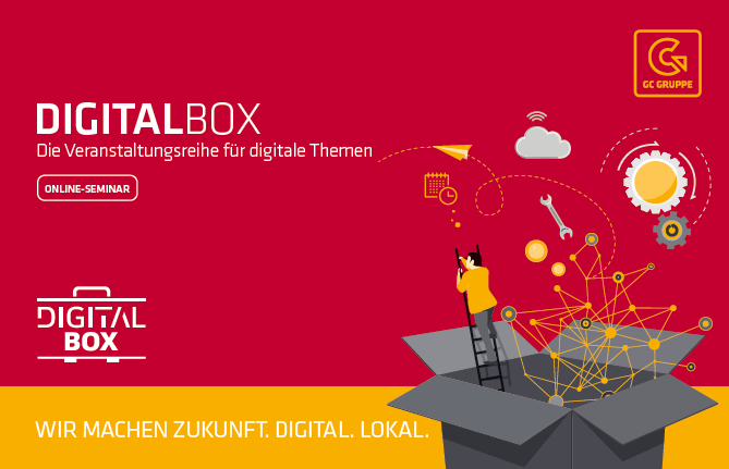 „Wir machen Zukunft. Digital. Lokal.“ – unter diesem Motto will die GC Gruppe mit der „DigitalBox“ dafür sorgen, dass das Fachhandwerk auch in Zukunft erster Ansprechpartner für den Endkunden bleibt. Die Veranstaltungsreihe bietet eine erste umfassende Orientierung, die je nach Bedarf die unterschiedlichen Module der „DigitalBox“ vorstellt oder von Best Practice-Anwendungen berichtet. Wählen Sie ganz einfach die Themen aus, die für Ihr Unternehmen Mehrwerte bieten. Die Teilnahme ist kostenlos. Hier die nächsten Veranstaltungen im Überblick: