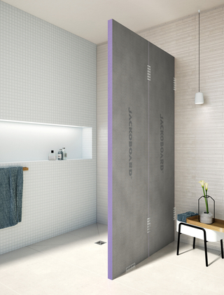 Mit „JACKOBOARD Plano“ können unebene Wände und Böden ausgeglichen werden. Zudem lassen sich druckfeste Trennwände herstellen, die sofort verfliesbare, plane Flächen für die Badgestaltung bieten.