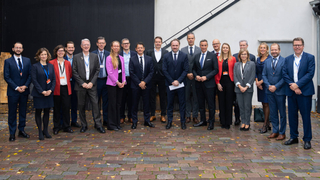 Vertreterinnen und Vertreter von Unternehmen aus dem Gebäudesektor, Politiker und Nachhaltigkeitsexpertinnen und -experten beim Renovate Europe Day 2025 in Kopenhagen, darunter EU-Kommissar Dan Jørgensen (10.v.r.) und Hansgrohe CEO Hans Jürgen Kalmbach (8. v.r.).