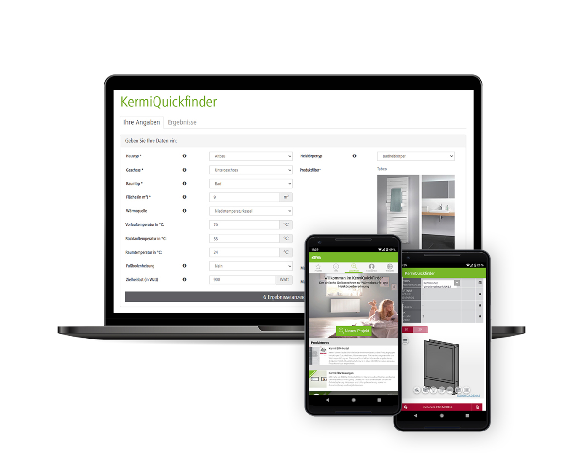 Der „KermiQuickfinder“ steht seit vielen Jahren für die einfache Wärmebedarfs- und Heizkörperermittlung. Nun wurde die mobile App-Version um das Kermi BIM-Portal erweitert.