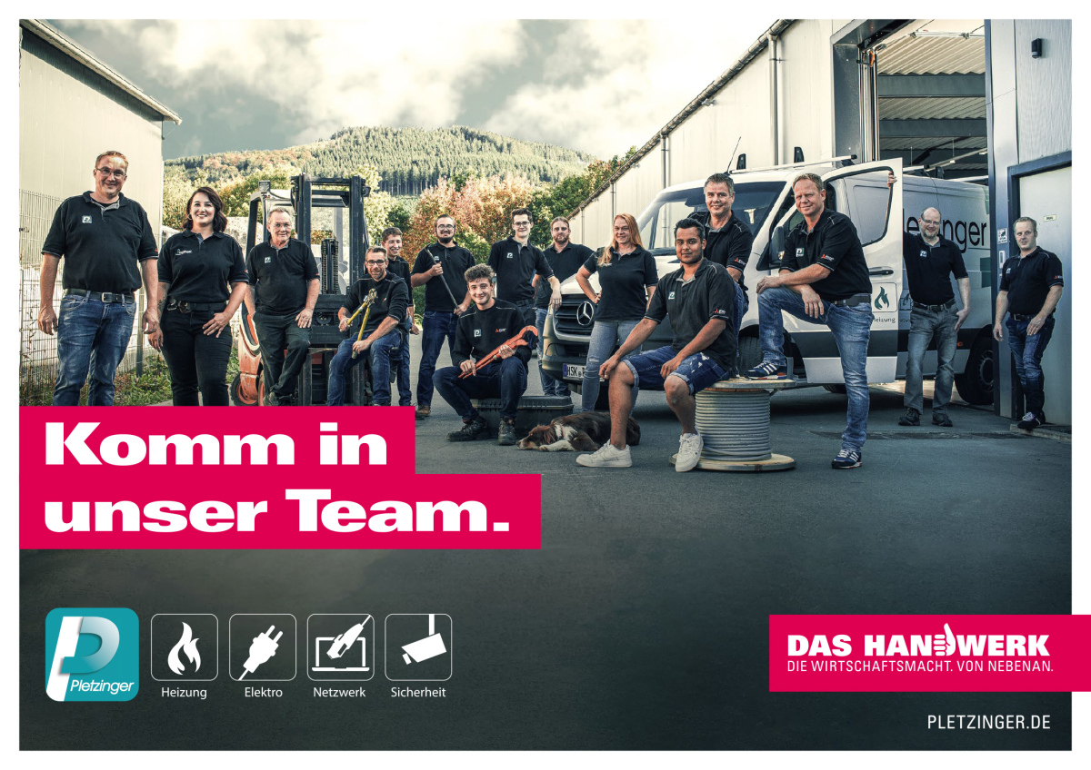Wenn die Firma Haustechnik Schmidt GmbH & Co.KG in diesen Tagen mit Großflächenplakaten rund um den Betriebsstandort in Bad Sooden ihren Kunden mitteilt, dass man weiter für sie da ist, dann tut sie dies im Design der bundesweiten Imagekampagne des Handwerks. Auch die Pletzinger Haustechnik GmbH in Eslohe präsentiert sich in ihrer Region auf Plakatwänden als Teil der „Wirtschaftsmacht von nebenan“ und bringt sich bei ihren Kunden nachhaltig in Erinnerung.