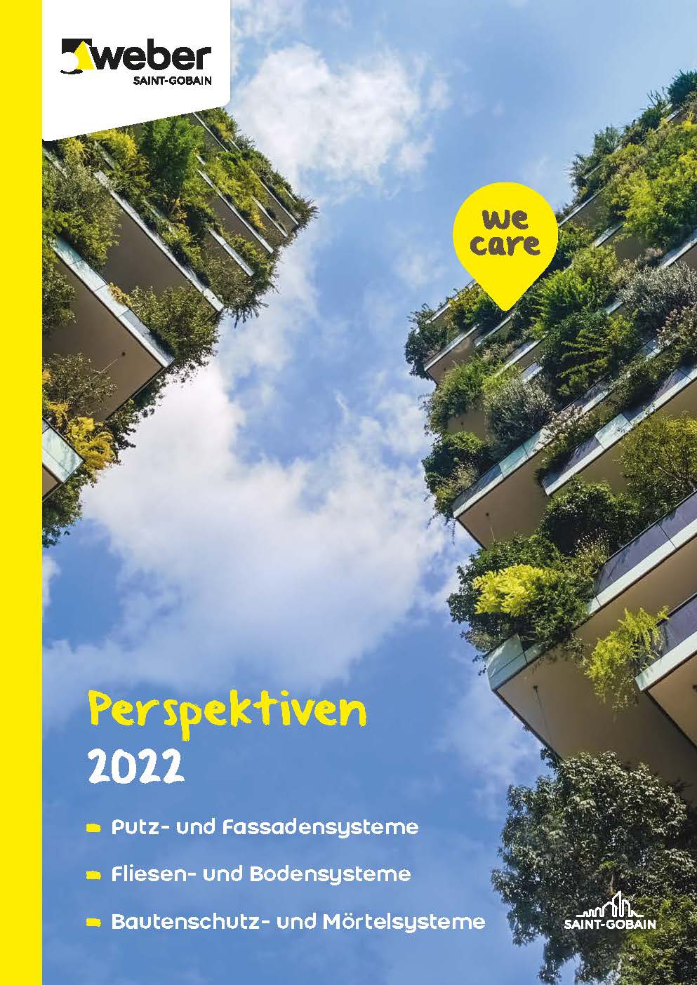 In seiner Broschüre „Perspektiven 2022“ stellt Saint-Gobain Weber auf 24 Seiten eine Auswahl seiner Systeme und Services aus allen Segmenten vor. In der Broschüre finden sich Neuheiten wie der pump- und fließfähige Betonersatzmörtel „weber.floor 4640 Outdoor RepFlow“ oder die hochflexible Universalabdichtung „weber Anschlussdicht“, die insbesondere für die Abdichtung von Fenstern entwickelt wurde. Ebenfalls neu ist der selbstverlaufende Nivellierausgleich „weber.plan 813-20“, der für großformatigen Fliesen den optimal ebenen Verlegegrund schafft.