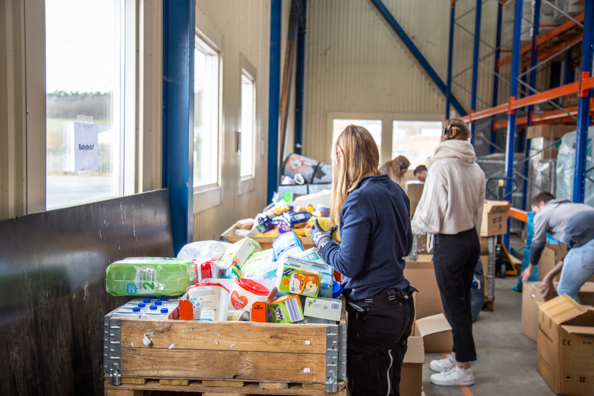 Mitarbeitende des Roth Familienunternehmens haben Lebensmittelpakete für die Ukraine gepackt.