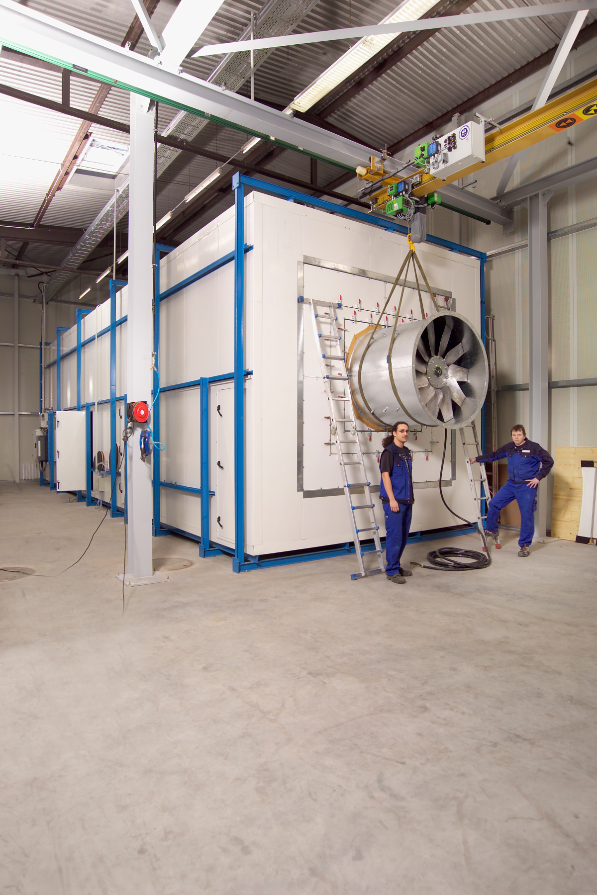 Im firmeneigenen Messlabor finden sich Schub- und Akustikprüfstände. Realisiert werden Messungen von Ventilatoren bis 600.000 m3/h.