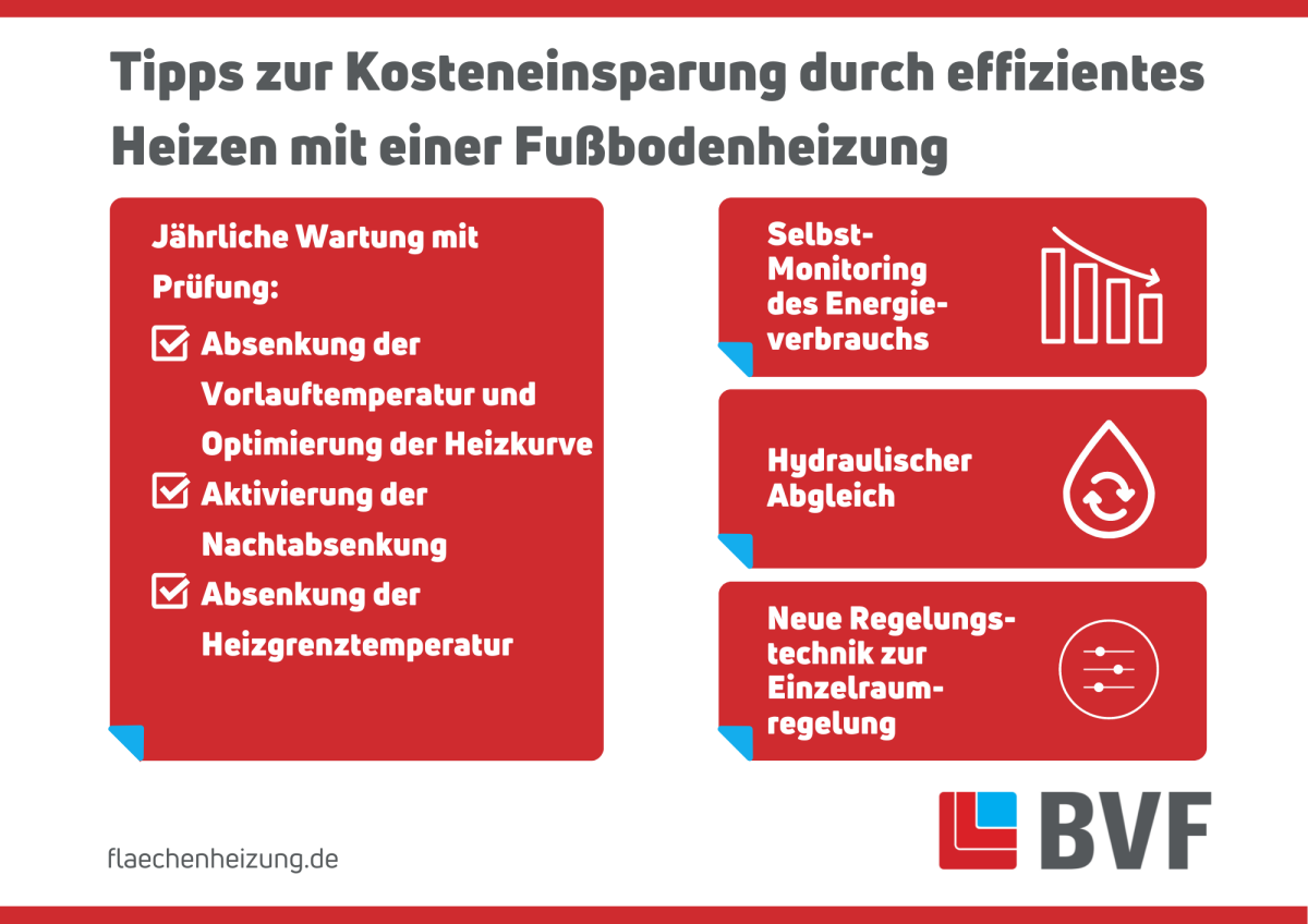 Die neue Information des Bundesverbandes Flächenheizungen und Flächenkühlungen e.V. gibt kompakte Tipps zum effizienten Heizen für Komfort- und Fußbodenspeicherheizungen und zeigt Möglichkeiten zur Modernisierung bestehender Anlagen auf. Sofern der elektrische Heizleiter nicht durch äußere Einwirkung beschädigt wird, gibt es keine Abnutzungserscheinungen. Es ist daher auch bei Jahrzehnte alten Systemen sinnvoll, zunächst Optimierungsmaßnahmen zu prüfen, ehe man über den kompletten Austausch nachdenkt.