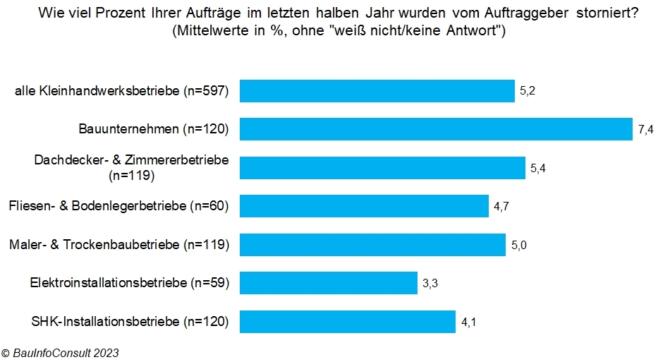 Wie viel % Ihrer Aufträge im letzten halben Jahr wurden vom Auftraggeber storniert? (Mittelwerte in %, ohne „weiß nicht / keine Antwort“)