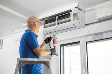 Hersteller Würth hat mit zwei Klimaanlagenreiniger-Sets eine Lösung entwickelt, mit der auf einfache und effiziente Weise die Außeneinheiten und die Innengeräte der Anlagen gereinigt werden können.
